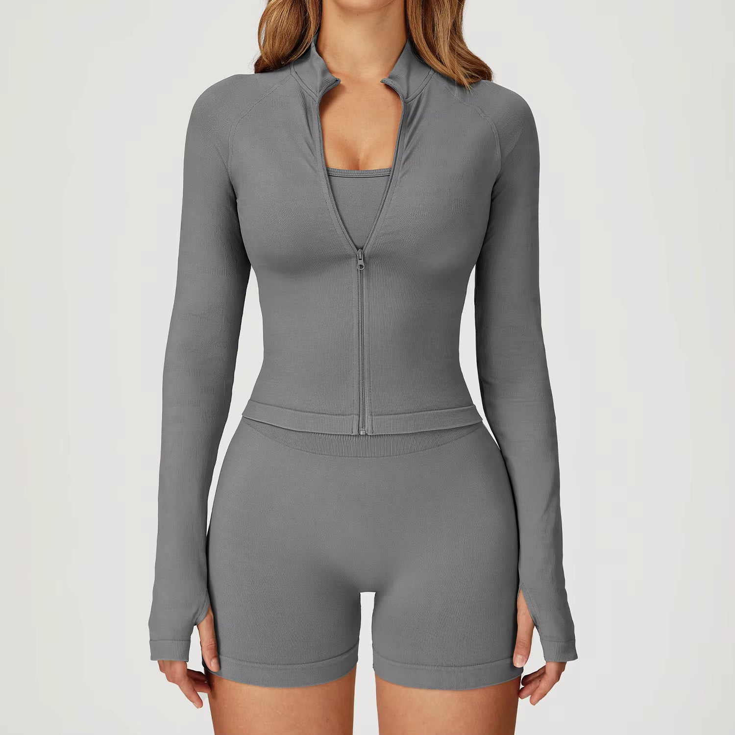 Grey / M(8) / 3-Piece Set – Top + Jacket + Shorts - $29.99 USD
