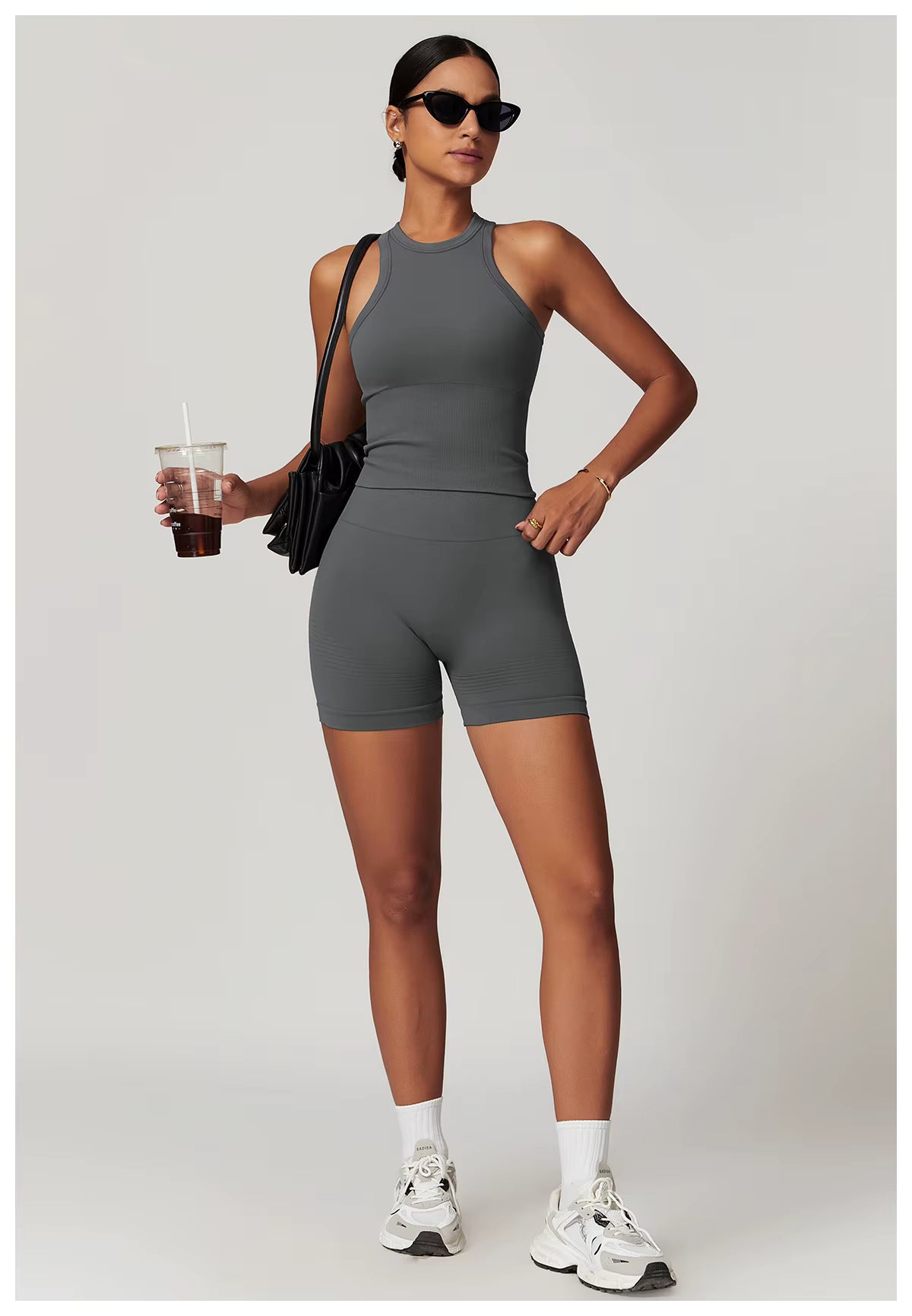 Grey / M(8) / Tank Bra + Jacket + Shorts - $29.99 USD